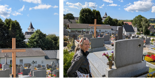 Unsere erste Station war Martinsberg, wir besichtigten den Friedhof und die Kirche.