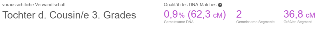P.S. meine Mama und der DNA Match sind tatsächlich Cousinen 3. Grades